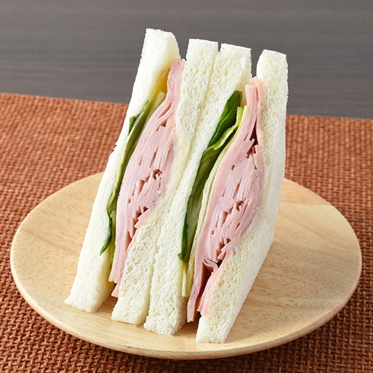 【内容】ハムをたっぷり使用したハムを味わうサンドイッチです。ハムの味わいを引き立てる特製バターマヨソースが味の決め手です。