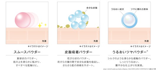スキンケア後のべたつきや、皮脂によるべたつきを抑えつつ、艶やかな仕上がりを実現するため3種のパウダー(図3)でアプローチ。付けたときから時間が経っても快適な肌触りが続きます。