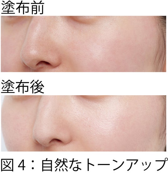 ほんのりナチュラルピンクの色味のパウダーが、 肌の色むらやくすみをカバーし、自然とトーンアップした肌を実現します(図4)。夜のスキンケアの最後に使用した時は、付けたまま眠ってOK。寝ている間も美白※1・肌荒れ防止ケアができます。