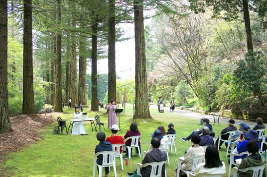 藤とシャクナゲなど春の花が楽しめる季節、お出かけをより楽しんでいただけるイベントとして、4月19-20日(土日)には「ハッピースプリングフェスタ」を開催します。フェスタでは、園内ガイドツアーや親子写生大会、コンサートなどさまざまなイベントが行われます。また、フェスタは「レッドヒル ヒーサーの森」に隣接する農産物直売所「朝津味(あさつみ)」との共催であり、朝津味でも総勢40以上のブースが出店するマルシェやステージイベント、農産物のショッピング、食事を楽しむことができます。