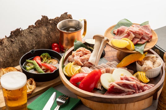 フードは、ホテルスタッフが厳選したお肉や野菜などの定番BBQメニューと、キャンプ飯メニューとして人気の「アヒージョ」をご用意。BBQの食材は、お客様ご自身で焼いていただくため、お好きなタイミングと焼き加減でお楽しみいただけます。ドリンクは、バーテンダーによるこだわりのドリンクを飲み放題でご提供いたします。