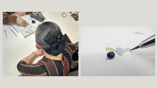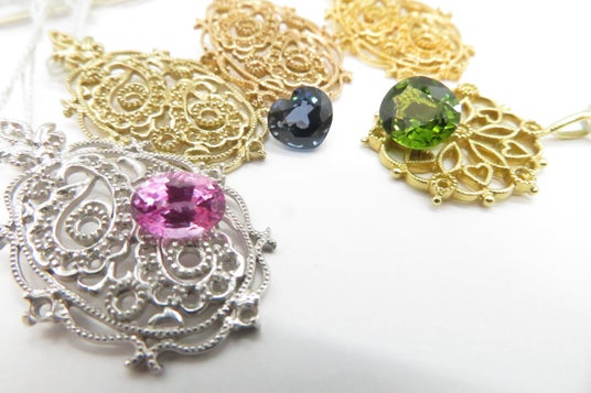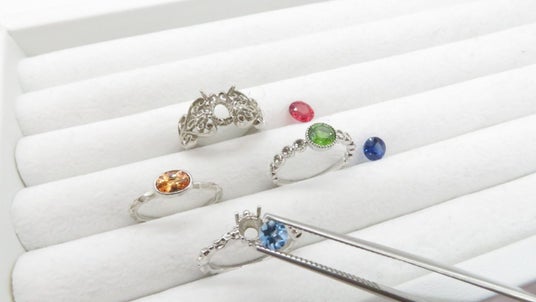 着せ替えをするように、選んだ宝石をジュエリーの枠に乗せてみる。
