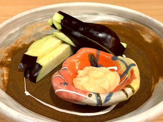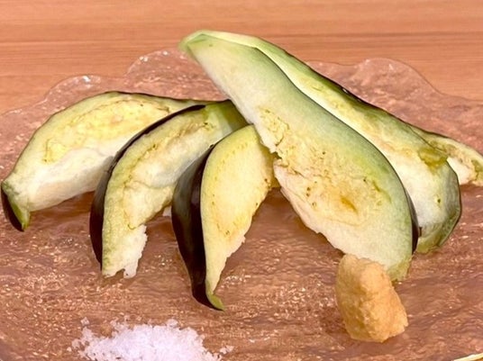 我々はそんな中出さんの熱い想いに感動・共鳴し、その想いをより多くの方に伝えるお手伝いが出来ればと考え、旬シーズンに突入する2025年4月15日(火)より、「水なす」を使った創作料理の提供を開始する運びとなりました。大阪で育った水なすを大阪で食す、地産地消をお楽しみください。