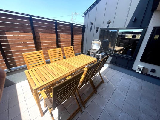 建物は木の温もりを感じられる北欧スタイル。室内外の境界を感じさせない設計と、開放感あふれる広々としたバルコニーではBBQも可能。最大6名まで宿泊可能で、3つの独立した寝室を備えており、家族連れや友人同士でのご利用にも最適です。