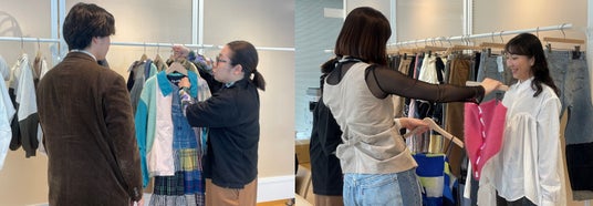 本イベントのスピンオフ企画として行われたファッションショー「ACTION for Fashion」は、自分らしく生きる上で欠かせない、自身のアイコンともいえる“ファッション”を通して新たなスタイルに挑戦するもの。開催に向けてはプロジェクトメンバーの皆さんがワールド北青山ビルに来社し、「普段とは違う服を着てみたい」「苦手意識のあった色や柄を選びたい」「街中にないスタイルにしたい」など自分自身の新しい一歩をイメージしながら、思い思いの服をセレクトしました。