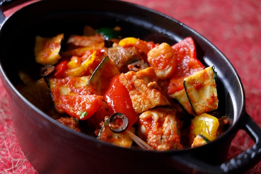 イタリア産グリル野菜とチキンの軽い煮込み ブラックオリーブ風味