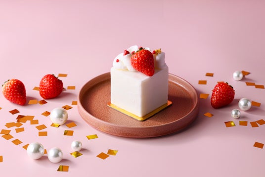 大人気のショートケーキを、特別な限定デザインでご用意しました。濃厚な生クリームに、自家製苺ジャムと旬の苺を忍ばせ、シンプルで上品な真っ白のキューブ型に仕上げています。可愛らしさと贅沢な味わいを兼ね備えた、特別なショートケーキです。