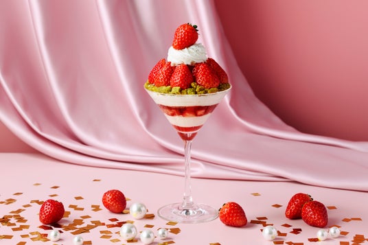苺の色鮮やかなフルーツティーや、苺とピスタチオ香るミルクティー、爽やかな苺の甘みを感じるカクテル等、この時季にしか味わえないドリンクをご用意。