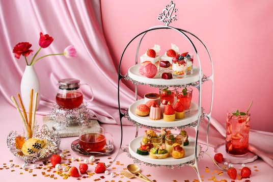 苺をふんだんに使用し、赤やピンクを基調に上品で華やかに仕上げたアフタヌーンティーです。