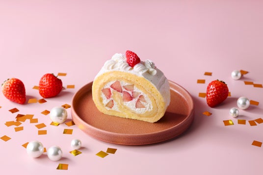 苺の果肉をたっぷり使用したバニラビーンズ香るカスタードクリームと濃厚な生クリームを、ふわふわもちもちの生地で包んだロールケーキです。