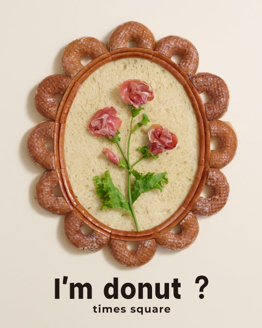 さらに、この度の出店にあたり、国内外問わず幅広く活躍されているアートディレクター・吉田ユニさんに、タイムズスクエア店だけのオリジナル・メインビジュアルを制作していただきました。絵や鏡をモチーフにした全4作品*は、全て本物の食材で作られており、I'm donut?のドーナツやソーセージ、クリームなどを用いています。”ドーナツの枠にとらわれない、新しい挑戦をし続けている”という当ブランドへのイメージが表現されています。このデザインを用いたグッズもタイムズスクエア店限定で販売いたします。