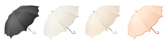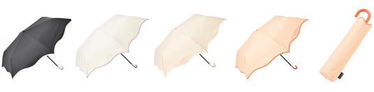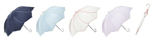 「スカラップ」の2色は傘の裾がスカラップデザインになっており、フェミニンで可愛らしい印象に。「パイピング」には日常使いしやすいシンプルなカラーと、トレンドのポップなファッションにぴったりなカラーをそれぞれラインアップしました。スイートなテイストからポップなテイストまでバリエーションの多さも魅力です。