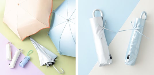 今年の日傘は遮光/ UVカット率や晴雨兼用などの機能性はもちろん、他にはないデザインや独自のサイズ感にもこだわりました。アパレルトレンドのリボンやウェーブを取り入れた傘や、大きめの直径と持ち運びやすい長さを兼ね備えた独自サイズの傘、 軽量に特化した折り畳み傘など様々な日傘をラインアップしました。