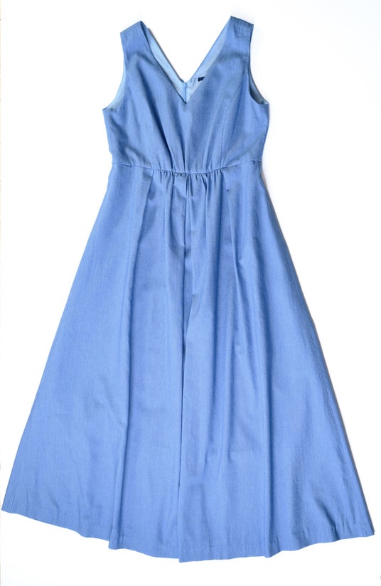 シルク混デニムのロングワンピースは、控えめな光沢としなやかな素材が特徴です。ハイウエストのフレアシルエットで動きに合わせ美しく揺れ、取り外し可能なサッシュリボンにより、さまざまななスタイリングが楽しめます。リラックス感とエレガンスを兼ね備えた一着です。