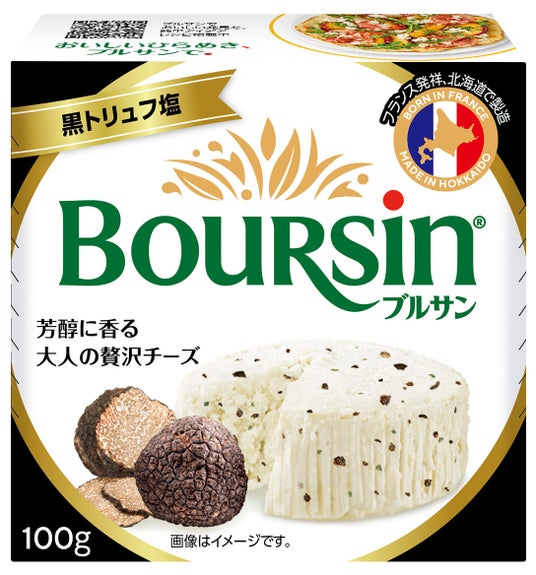 「黒トリュフ塩」は、イタリアの老舗トリュフブランド「SATINO TARTUFI」社*の黒トリュフ塩を使用。ブルサンチーズの濃厚さはそのままに、トリュフの香りが絶妙に調和された、自宅で簡単に特別な日を演出できる“大人のためのご褒美チーズ”です。「大切な人との特別な記念日」、「ちょっと贅沢したいときのご褒美」、「いつものレシピをグレードアップさせたい」など、様々な喫食シーンで活躍します。特別な日の食卓を一層華やかに彩り、いつもの食卓をグレードアップさせてくれ、今回のコラボメニューに限らず、クラッカーやバゲット、パスタのソース、サラダに添えるだけなどアレンジは無限大です。