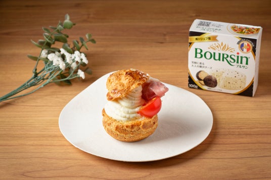 「ブルサン」は、フレッシュチーズならではのミルク感あふれる濃厚なチーズの味わいと、厳選されたハーブや香辛料などの豊かな香り、なめらかな口どけ、そしてほろほろとした独特の食感が特長。フランスでは、「ブルサンを知らないフランス人はいない」と言われるほど、家庭の食卓に定着しているチーズです。今回、AU GAMIN DE TOKIO オーナーシェフ・木下威征氏考案のコラボメニュー【ブルサン 黒トリュフ塩 フレッシュトマトと生ハムと共に】で使用するフレーバーは「ブルサン ⿊トリュフ塩」となっており、ブルサンから約1年半ぶりとなる新フレーバーとなっております。