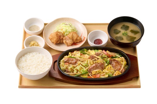 『~ガツンとニンニク~ たっぷり野菜の豚ハラミ炒め定食』は、弾力のある食感と濃厚な肉の旨味が特徴の豚ハラミと、シャキシャキ食感が楽しめるたっぷりの野菜を使用し、にんにくの効いたオリジナル醤油ベースのたれで仕上げた食べ応えのある一品です。にんにくの香ばしい風味が食欲をそそり、ごはんがどんどん進む味わいに仕上げました。さらに、お好みで辛子味噌を加えれば、味変・味調整も楽しめます。さらに、『~ガツンとニンニク~ たっぷり野菜の豚ハラミ炒めとから揚げの定食』では、豚ハラミの旨味に加え、ジューシーなから揚げも一緒に楽しめる贅沢な定食となっています。
