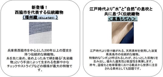 長年愛される「高島ちぢみ」に加え、今季は新たに、兵庫県西脇市の伝統織物「播州織(ばんしゅうおり)」が仲間入りします。