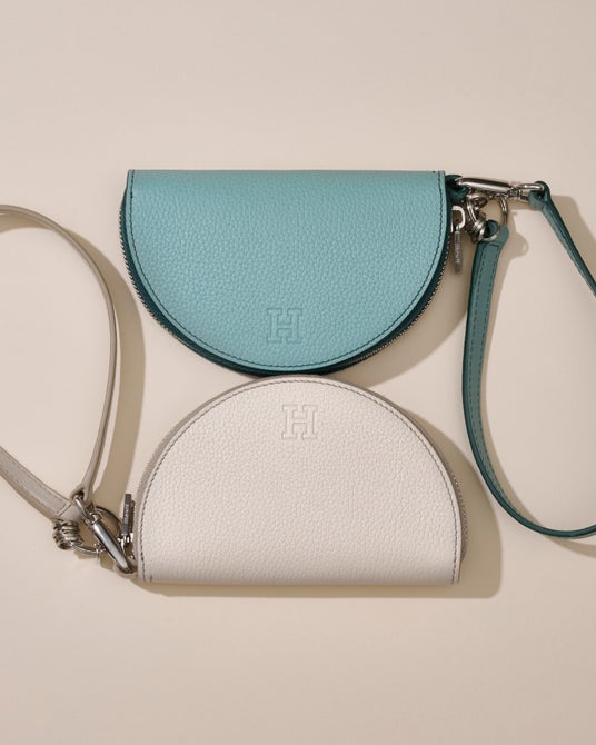 半月型のケースはアクセサリー入れ、コスメポーチ、小銭入れとしても使用でき、カードも収納できるマルチケースです。用途が限定されないのでギフトにもおすすめです。