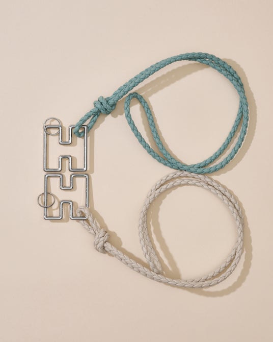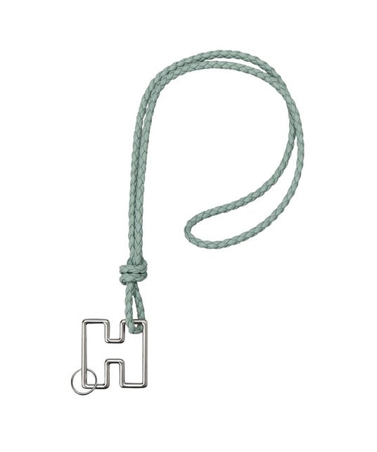 Hをかたどったメタルとイントレチャートのひもが特徴のキーホルダーは、チャームとしてシンプルなバッグのハンドルに付けていただくと上品なワンポイントになります。