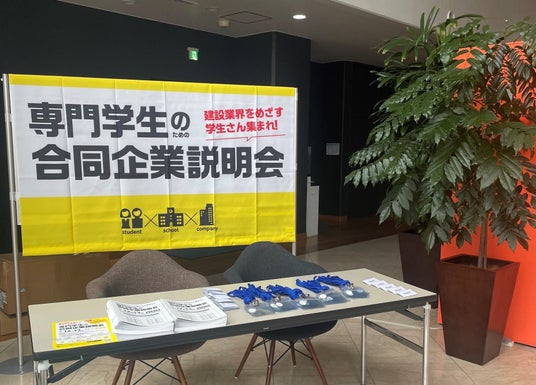 建設業界の未来を担う若者たちと、企業との出会いの場として専門学校生向けの合同企業説明会を企画・実施しました。施工管理職を中心に人材のニーズが高まる中、学生と企業が直接交流できる機会はとても貴重です。21社が出展し学生たちにとっては業界への理解を深める場に、企業にとってはより良い採用活動につながる有意義な場になりました。