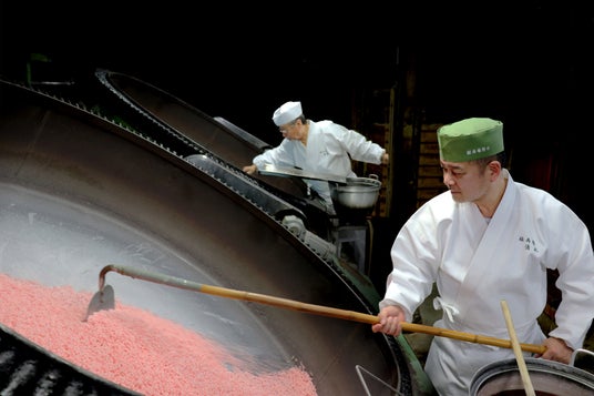 緑寿庵清水の金平糖の中でも、日本酒を使った金平糖は、熱を加えると、蒸発して味が飛んでしまうことから、製造するのが最も難しい金平糖です。この度、日本酒、有田焼、金平糖、それぞれの職人たちが、工程から手しごとのバトンをしっかり受け継ぎ、じっくりと約十六日間かけて、長年培った経験と勘を頼りに熟練の職人技で育て上げ、『十四代』の味と香りを金平糖に凝縮させ閉じこめることに成功。口の中に広がる穏やかな麹の甘みと砂糖の結晶が醸し出す、余韻が続く金平糖に仕上がりました。