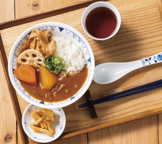 新しい組み合わせなのに、なぜか懐かしい味わいが特徴の、"豚汁"と"スパイス"の出逢いから生まれた和風豚汁カレーです。
