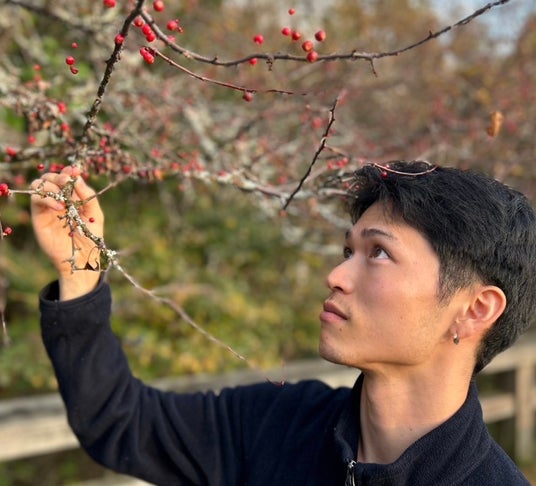 私の研究目的は、人間が設置した遊歩道が、森林に生息する野生哺乳類と、それら野生哺乳類によって種子が散布される植物に与える影響を明らかにすることです。従来の研究で実施してきた糞や種子数のカウントだけでなく、センサーカメラや、糞から得られるDNA情報を活用して、遊歩道が影響を与える哺乳類個体の特徴の解明を試みます。森林で共生する動物と植物、そしてヒトの、三者共存の実現につながる研究を目指します!