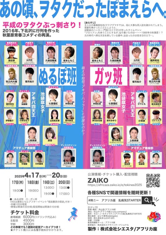 劇場公演&全公演生配信 2025年4月17日(木)~20日(日)https://africaza.zaiko.io/e/tokinee2025