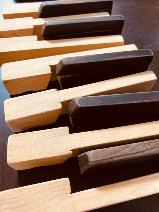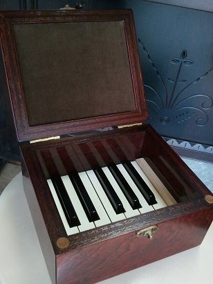 最初のメモリアルBOXは、鍵盤は入っていたものの、部材を使っただけの四角い箱型でした。でも、ピアノはメーカーや機種によって表情がそれぞれ違うので、その面影を残したデザインで仕上げることを重視し、お客様が一番たくさん触れたであろう鍵盤や鍵盤蓋、想い出の傷なども残すように1台1 台 デザインするようになりました。1.鍵盤を残す