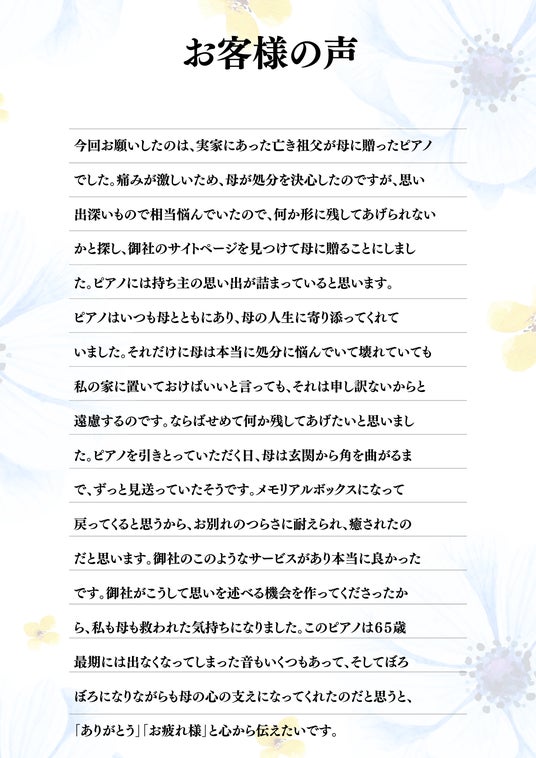 (依頼者であるピアノの持ち主の娘様からのお手紙を一部抜粋)