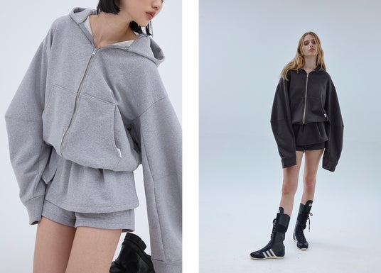 “立体フォルムとラフさの掛け合わせ”で、定番のフーディーをESIÓらしいアプローチで再構築。身頃と同等の生地量を使用した贅沢なボリュームと立体的パターンを施したスリーブは、モードなエッセンスを加えます。フロントの逆開ファスナーで、様々なフォルムでの魅せ方が可能。同素材のEdge frill shortsと合わせての着用がオススメです。
