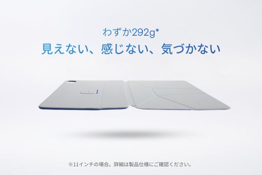最大7.5cmまで持ち上げられるMOFT独自のフローティングモードにより、姿勢を正すことで首の負担を減らすことができます。また、20種類以上ある折り方次第で最適な角度をつけられるため、従来の立て方だけでなく縦置き・横置きまで自由自在で場所を問わずフィットさせられます。折り紙にインスピレーションを受けたデザインは見映えを損なうことなく機能を有し、そのサイズもわずか292g※の超軽量に収めました。磁気フローティング設計により創造性と作業効率を高め、ハンズフリー操作や共同作業にも最適なため、ビジネスパーソンやクリエイター、学生に至るまですべてのiPadユーザーに満足いただける製品です。 ※11インチサイズを使用した場合