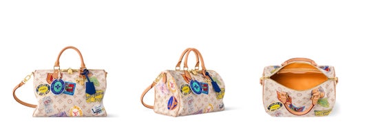 「スピーディ・バンドリエール 30 ソフト」は、飛行機のチャームと、ガストン-ルイ・ヴィトンのオリジナル・コレクションから受け継いだ遊び心溢れるパッチワーク風のラベルをあしらった、旅に最適なアイテムです。より長めのハンドルを取付けてショルダーバッグとしても楽しめます。