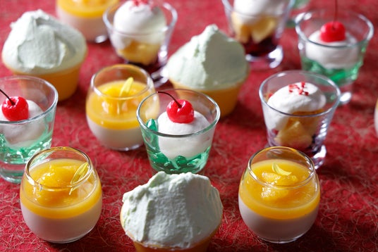 グラスデザート3種( 紅茶のパンナコッタとオレンジソース/シフォンケーキとベリーコンポート/メロンソーダジュレ)/スティックワッフル(ワゴンスイーツ)