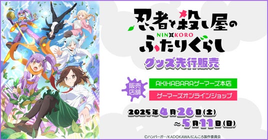 株式会社カードラボ ゲーマーズ(本社:東京都豊島区、https://www.gamers.co.jp/ 以下ゲーマーズ)は、2025年4月26日(土)よりTVアニメ『忍者と殺し屋のふたりぐらし』グッズ先行販売を開催することをお知らせいたします。