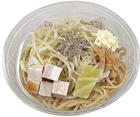 茹でたもやしとキャベツ、チャーシューが、弾力のある麺と相性抜群。しっかりと混ぜてお召し上がりください。