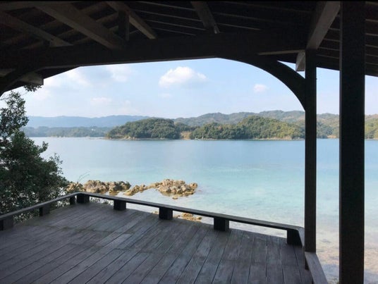 静かな海、大村湾を望む邦久庵。
