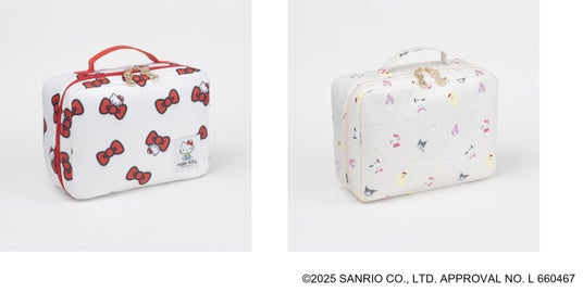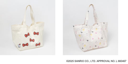 また、5月上旬からはハローキティとサンリオキャラクターズをデザインしたトートバッグ、マルチケース、マルチポーチも発売いたします。マザーズバッグにぴったりな大型トートバッグは全面にハローキティの赤いリボンがちりばめられ、隅からハローキティがひょっこり覗いている、ハローキティファンの心をくすぐるデザインとなっています。マルチケースとマルチポーチは、引手が金のリボンの形になっているなど細部にまでこだわった作りとなっており、母子手帳入れや紙おむつ入れはもちろん、さまざまな用途にご使用いただけます。