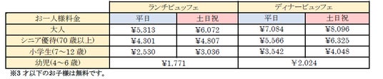 通常のランチビュフェ または ディナービュフェに以下の特典が付きます。