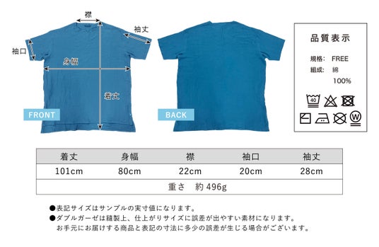着丈101cm / 身幅80cm / 襟22cm / 袖口20cm / 袖丈28cm