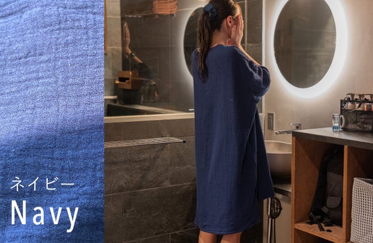 ガーゼ素材なので、濡れた素肌に着ても、やさしく身体を包みながら水分を吸収。