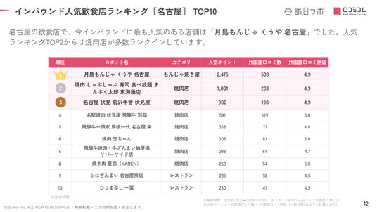 【独自調査】2025年最新:外国人に人気の飲食店ランキング[名古屋 編]1位は「月島もんじゃ くうや 名古屋」!| インバウンド人気飲食店ランキング #インバウンド #MEO