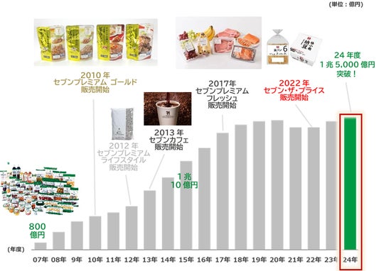 株式会社セブン&アイ・ホールディングス(本社:東京都千代田区、代表取締役社長:井阪 隆一)が展開するプライベートブランド『セブンプレミアム』は、お客様のご愛顧により2024年度の年間売上金額が初めて1兆5000億円を突破しました。