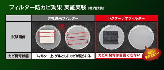 「ドクターデオ」成分を含んだフィルターが、フィルター上のカビの成長を抑制します。