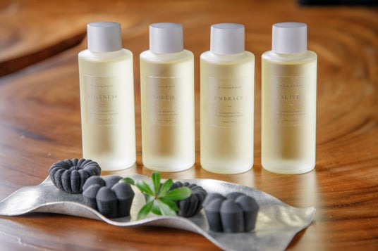 米ぬかや椿など日本人が古くから慣れ親しんできた和の天然成分100%配合のオリジナルオイルです。THE SPAのトリートメントでも実際に使われている香や効能が異なる4種のオイルをご用意いたしました。