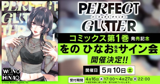 株式会社Cygames(本社:東京都渋谷区、代表取締役社長:渡邊耕一)は、マンガ配信サービス「サイコミ」で連載中の『パーフェクト グリッター』の第1巻発売を記念して、作者・をの ひなお先生(前作:『明日、私は誰かのカノジョ』)のサイン会を2025年5月10日(土)にHMV&BOOKS SHIBUYAで開催します。