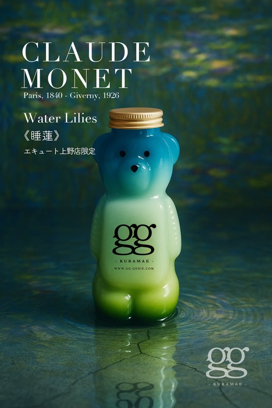 印象派の巨匠・クロード・モネが描いた名作≪睡蓮≫からインスピレーションを得た、エキュート上野店限定の特別なクマボトルドリンク。