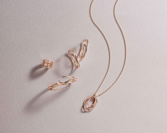 最新コレクション「Rattan」は、隈研吾氏が手がけた籐(ラタン)家具をデザインソースにした、一筆書きのような大胆なフォルムのジュエリー。