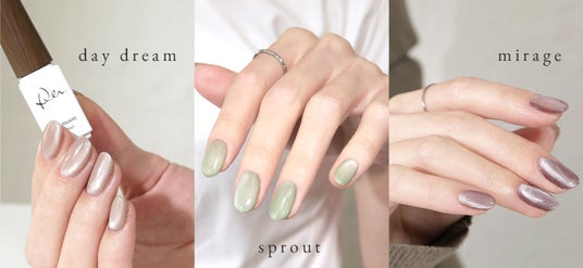 ■全3色の新色コレクション爽やかなミントグリーン、上品なピンクベージュ、幻想的なパープルの春らしいカラーバリエーション。純白のマグネットが光を繊細に反射し、フラッシュのグリッターがさらに華やかな煌めきをプラス。指先に上品な輝きを宿す、新たなマグジェルが誕生。